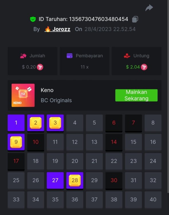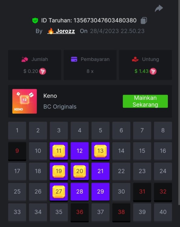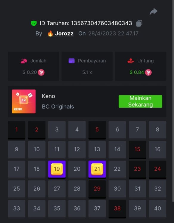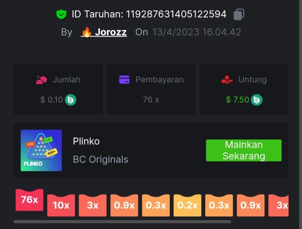 4. EASY 1. Classic Dice x5 https://bc.game/#/sd/117HABJTZXG93N 2. Baccarat Tie x9 https://bc.game/#/sd/117HAE6HJX1S7N 3. Crash x10 https://bc.game/#/sd/117HAOKZZ28AVN 4. Egyptian Adventure x10 https://bc.game/#/sd/117HAV0LKXT4PF 5. Oriental Beauties x20 https://bc.game/#/sd/117HB4734PPMHF 6. Cave Of Plunder x7.5 https://bc.game/#/sd/117HB9GUQAJEOJ 7. Sport Ticket ID : 2258207423246504383 8. Hello Easter x20 https://bc.game/#/sd/117HCEBI88OTG3 9. Lucky Easter x30 https://bc.game/#/sd/117HDI6Q91045V 10. Enable 2FA, Verif Email & Phone MEDIUM 1. Roullet 0 https://bc.game/#/sd/117HEOU1WKNLZN 2. Plinko x76 https://bc.game/#/sd/117HEUUG5J7GNN 3. Keno Single x50 https://bc.game/#/sd/117HF6BSZ4T0YB 4. Ring Of Fortune x99 https://bc.game/#/sd/117HJUOPXQPYQB 5. Sports Ticket ID : 2258248123044466967 HARD 1. Whell 49.5x https://bc.game/#/sd/117I6RI9AWRXN7