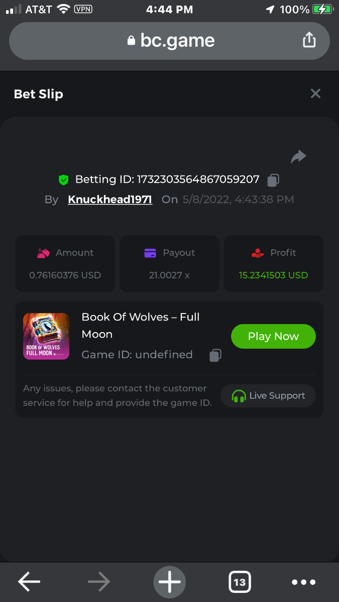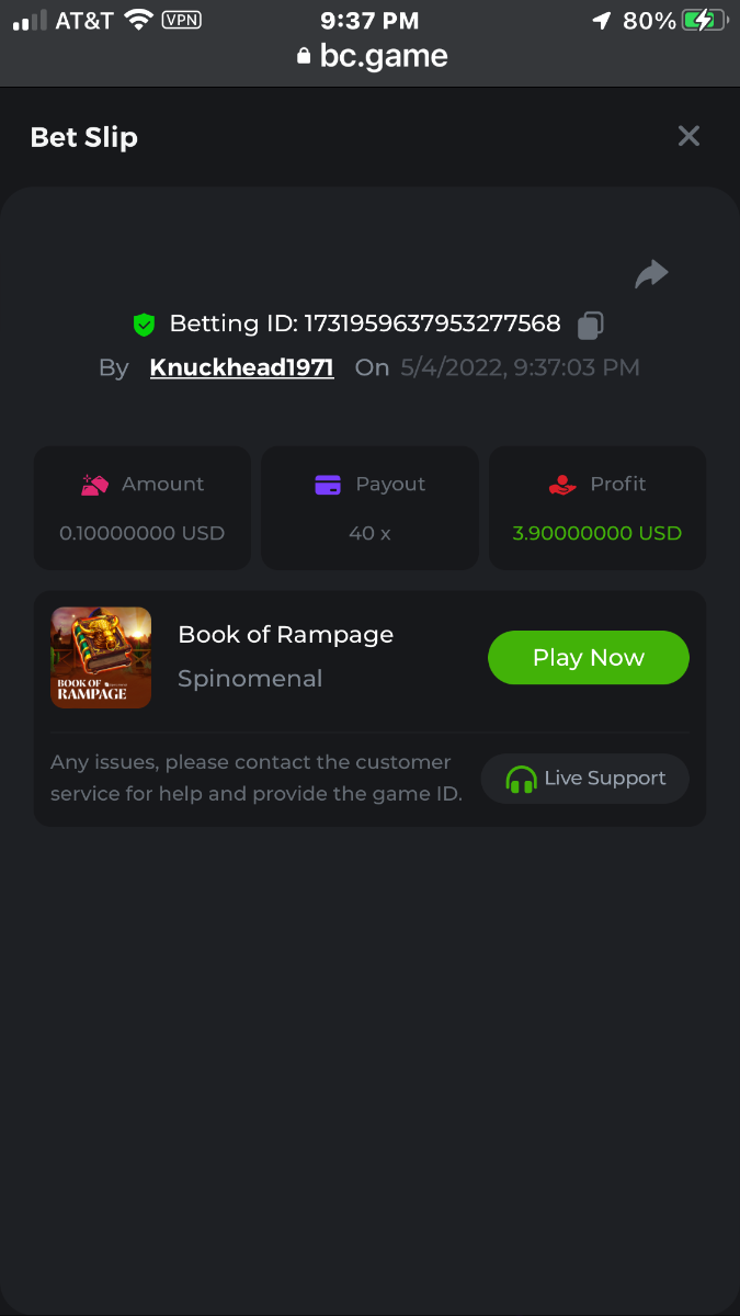 7. Grey https://bc.game/sd/?sd=10JQ3N5PEGGS2B purple https://bc.game/sd/?sd=10JQ3SOXMDQ5G3 orange https://bc.game/sd/?sd=10JQ46HQF3BBIR green https://bc.game/sd/?sd=10JQ5MRG4GET5F All wins are in order verified by time and date in succession grey first and green last bet was .00002596 BTC = $1.00 USD