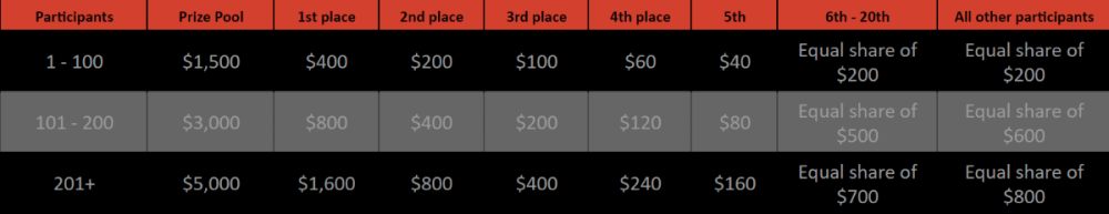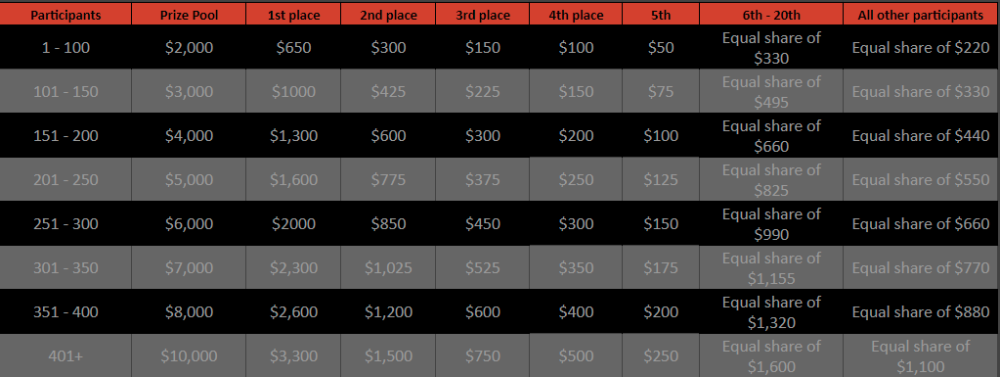 8. Hey Hhao, Please you can calculate yourself based on your wins, or await the event's conclusion and leaderboard.