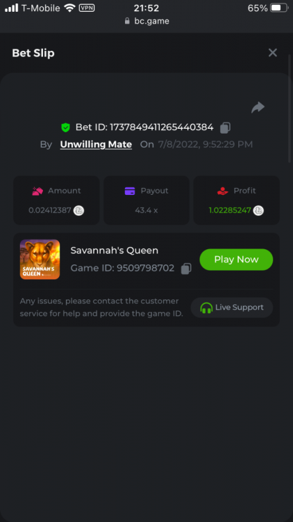 UnwillingNate replied to BCGame_Maxim's topic in VIP Challenges